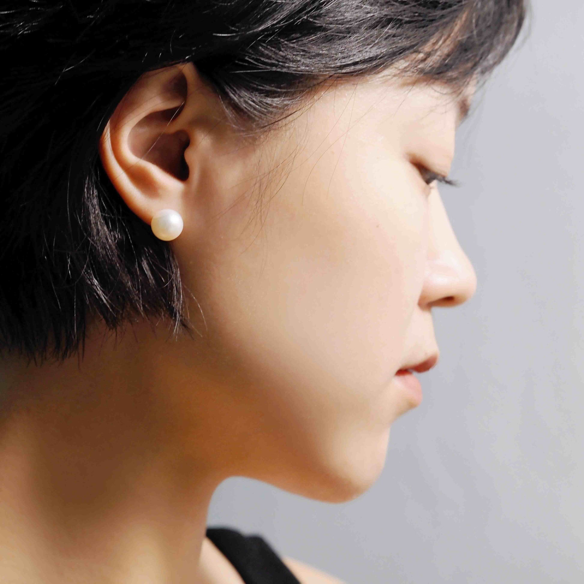 Dot showcases a single white pearl with a smooth, lustrous finish. Its minimalist design offers a refined look suitable for any occasion.