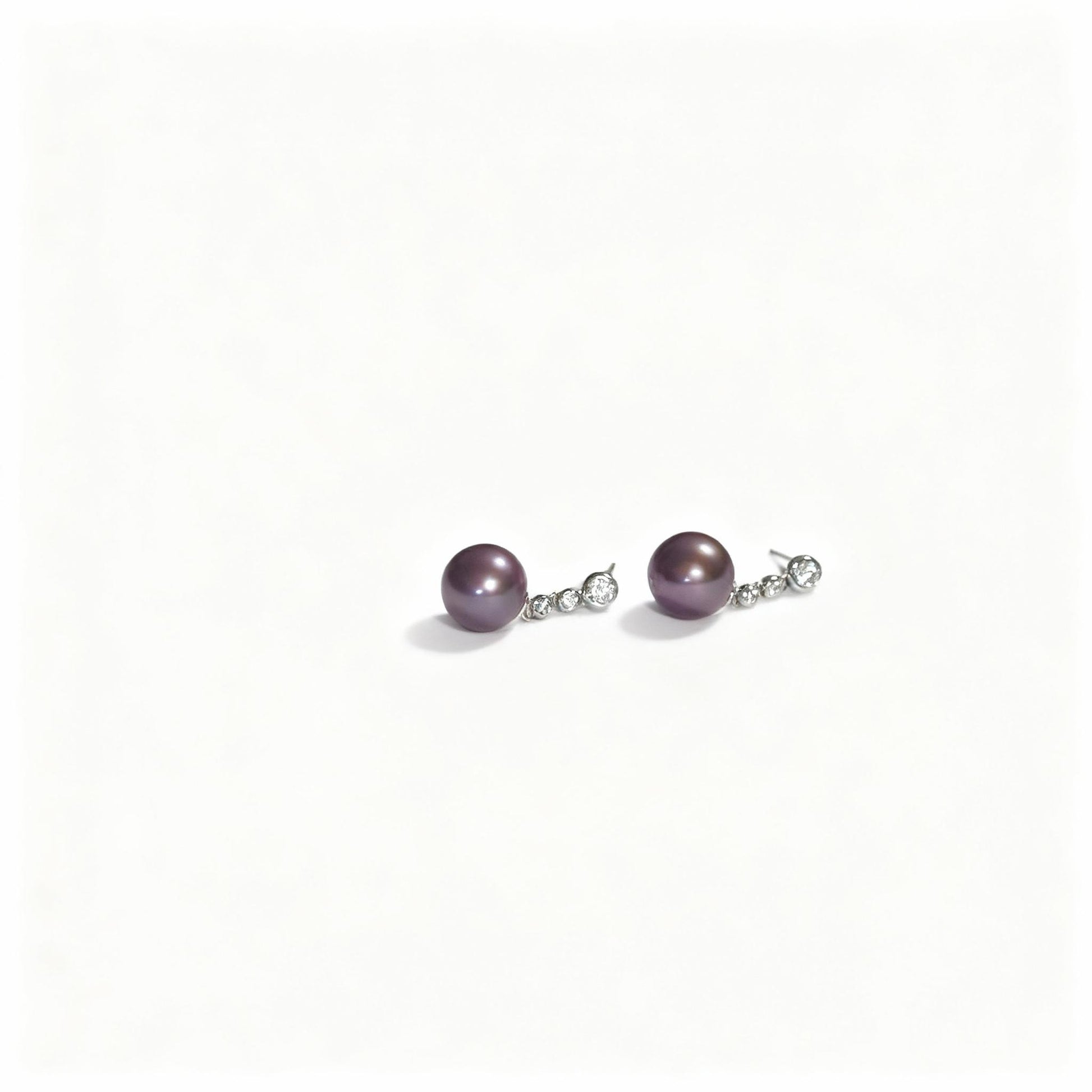 Purple pearl earrings in sterling silver that won't irritate sensitive skin. Bold, passionate fire element energy in every wear.